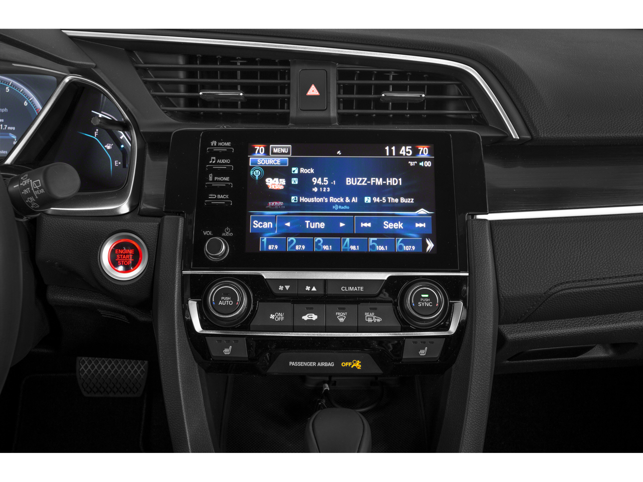 - Radio: 180-Watt HD Audio System -inc: 8 speakers, 7-inch display audio w/high-resolution electrostatic touch-screen, knob and hard keys for primary controls and customizable feature settings, Bluetooth® HandsFreeLink, Bluetooth® streaming audio, Radio Data System (RDS), speed-sensitive volume compensation (SVC), 1.5-amp USB smartphone/audio interface port in front console, 1.0-amp USB audio interface port in center console, HondaLink, Apple CarPlay integration, Android Auto integration, SiriusXM radio, SMS text message function, illuminated steering wheel-mounted controls and fin-type roof-mounted antenna
