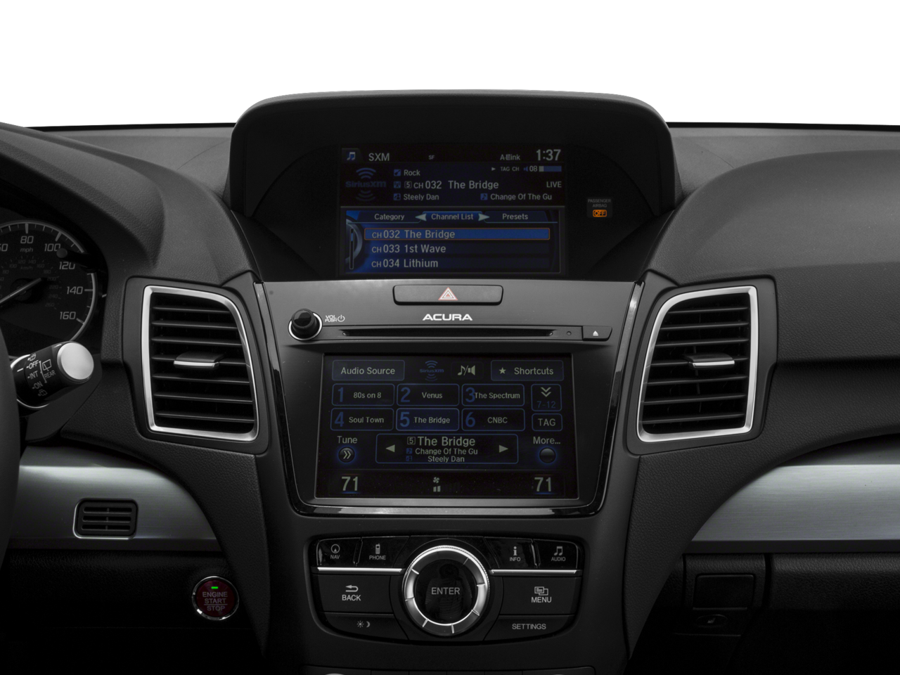 - Radio: Acura/ELS Studio Premium Audio System -inc: 10 speakers, Siri Eyes Free, SMS text message function, On Demand Multi-Use Display (ODMD), Bluetooth® HandsFreeLink wireless telephone interface, Song By Voice, Aha compatibility, HD Radio, SiriusXM satellite radio, Pandora capability, USB audio interface w/iPod integration, Bluetooth® streaming audio, MP3/auxiliary input jack, Speed-Sensitive Volume Compensation (SVC) and HomeLink
