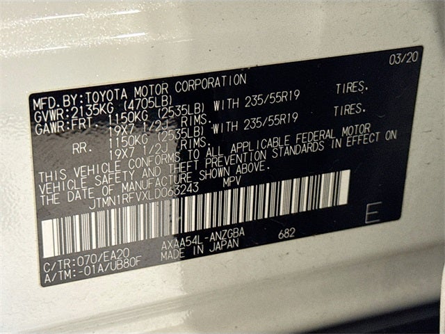 - Front Tire Size: P235/55HR19