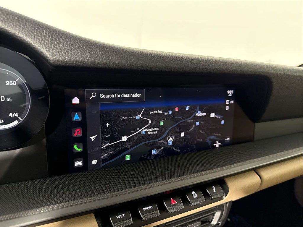 - Radio: Porsche Communication Management (PCM) -inc: online navigation module, Connect Plus (wireless Apple CarPlay and wireless Android Auto, LTE communication module, wireless internet access and numerous Porsche Connect Services), SiriusXM w/3-month Platinum Plan trial subscription, integration of Apple Music, Apple Podcasts and Spotify, voice pilot w/natural language understanding and activation via Hey Porsche, navigation plus w/real time traffic information and online map update and sound package plus (analog sound system, 8 loudspeakers, 150-watt total output w/integral amplifier and digital signal processing)